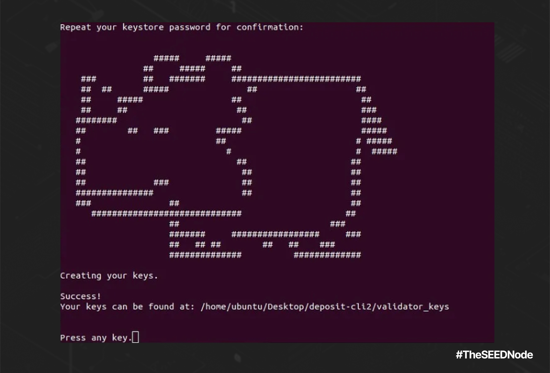 Como comentario final, el archivo keystore-m*.json podrá ser usado directamente en el validador (como hot wallet) o mediante servicios como Web3Signer para disminuir el riesgo de slashing (aunque aumentando la dificultad técnica).