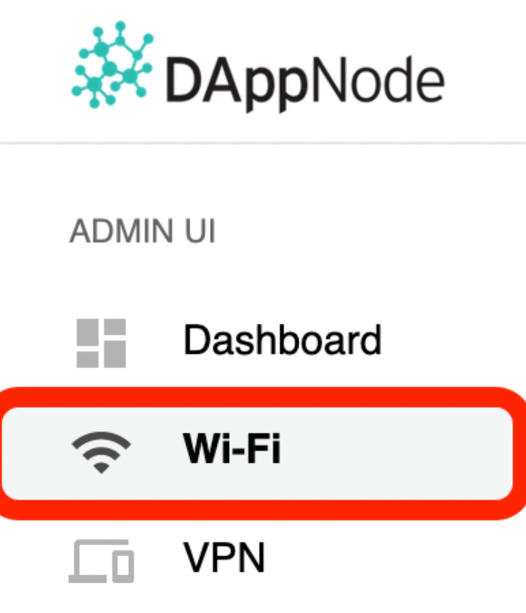 Si no tenes uso para el acceso a la red local porque estas usando las funciones de VPN o el punto de acceso WiFi incluido, también podes deshabilitarlo (y, por supuesto, habilitarlo nuevamente más tarde) en el menú de la barra lateral de Wi-Fi en Dappnode:
