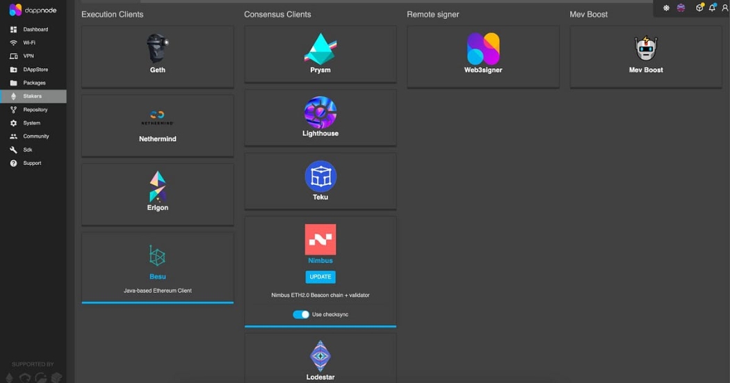Seguimos avanzando y llegamos a un paso crucial: explorar las diferentes opciones de clientes disponibles. Al seleccionar un cliente para tu dispositivo (nodo), ya sea al instalar DappNode o por cuenta propia, debes tener en cuenta que existe una amplia variedad de opciones. Cuantos más clientes haya, más resistente será la red a posibles ataques.