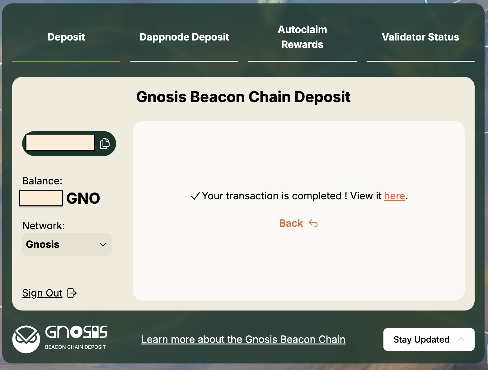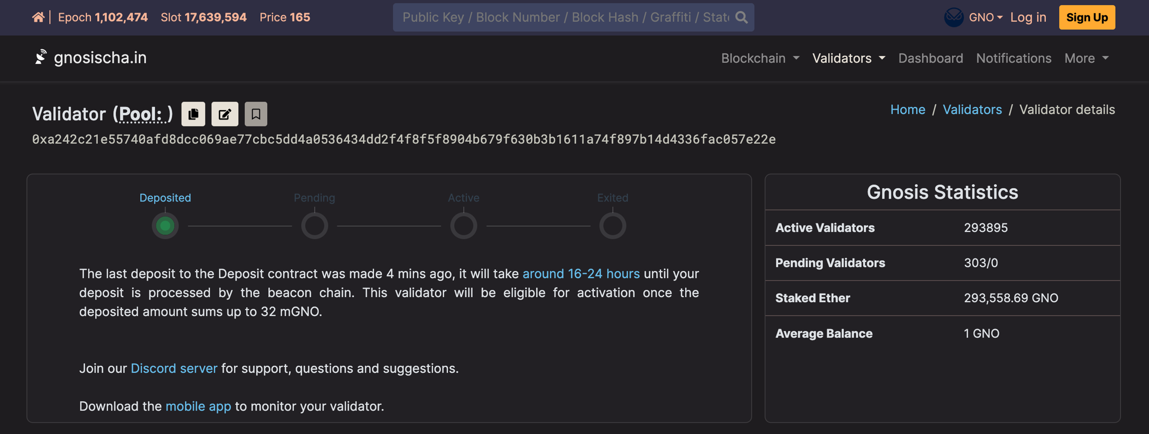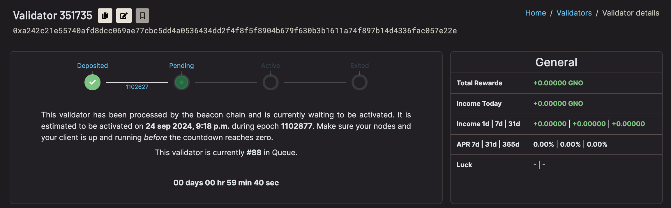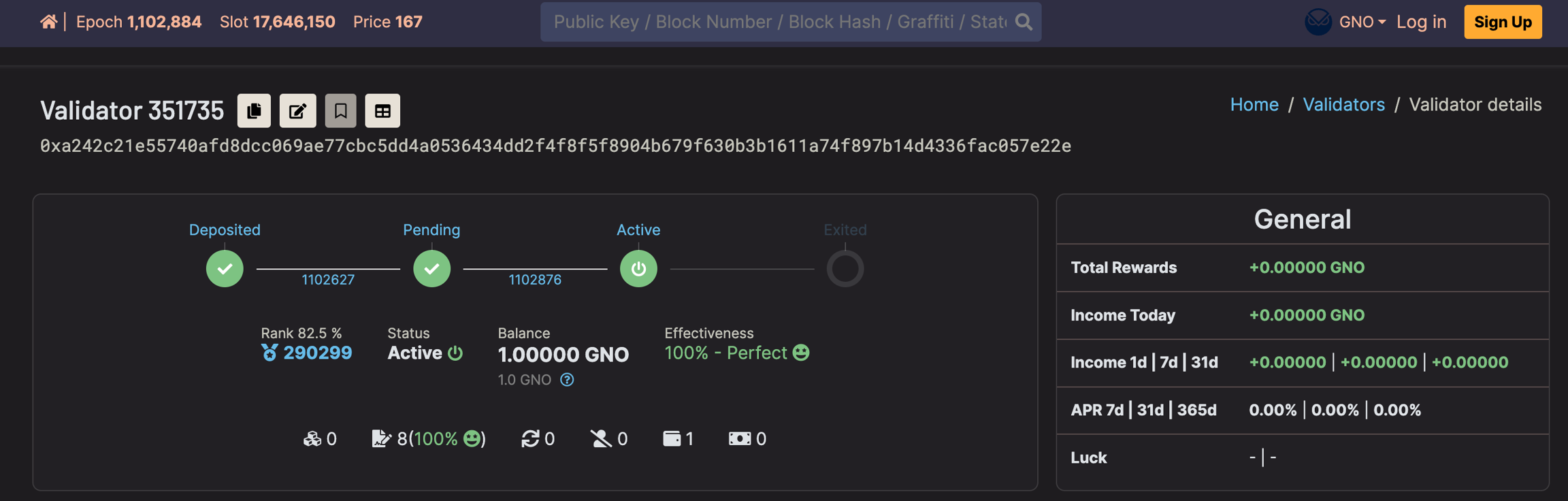 Una vez en estado Active, nuestro validador ya es parte de la red. A partir de este punto somos un validador mas en la red Gnosis.