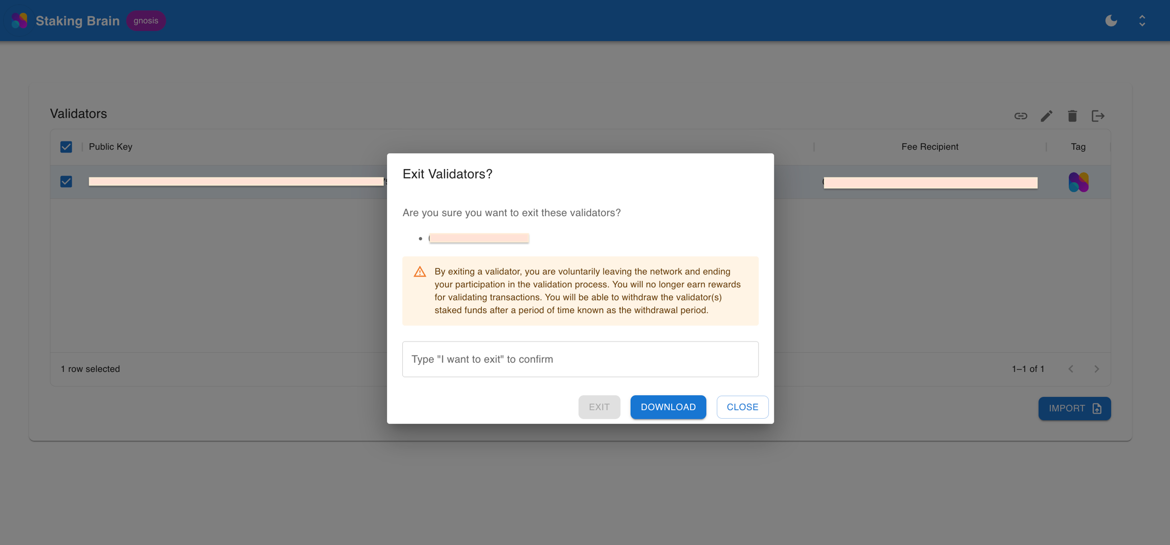 Para ejecutar el retiro del depósito (lo que te lleva a dejar de ser un validador activo de la red) el procedimiento es el siguiente.