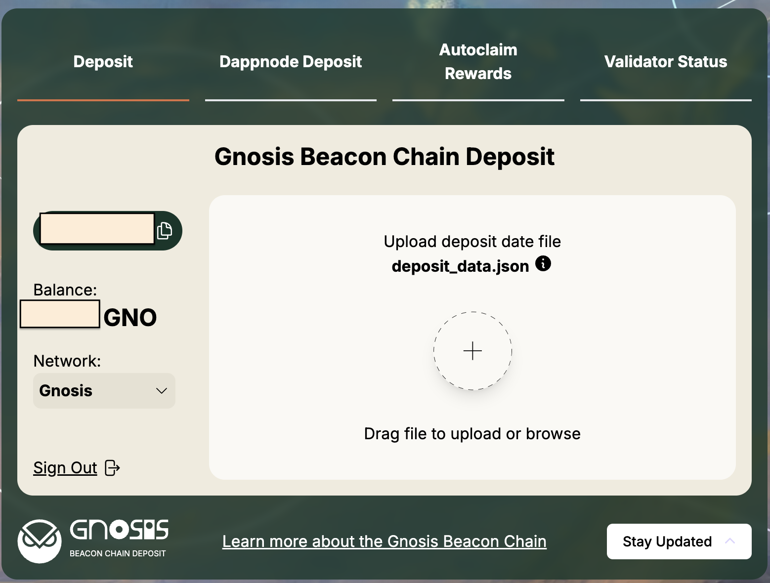 26. Subes el archivo deposit_data*.json que generaste con Gnosis Wagyu Key gen