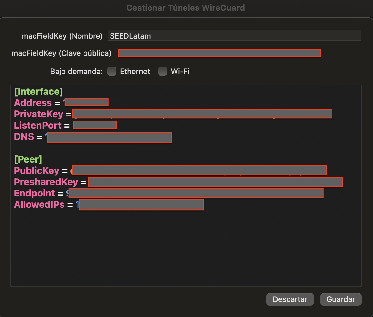 10. Descargar e instalar Wireguard desde el siguiente enlace y cargar las credenciales correspondientes (también está la opción de utilizar OpenVPN):