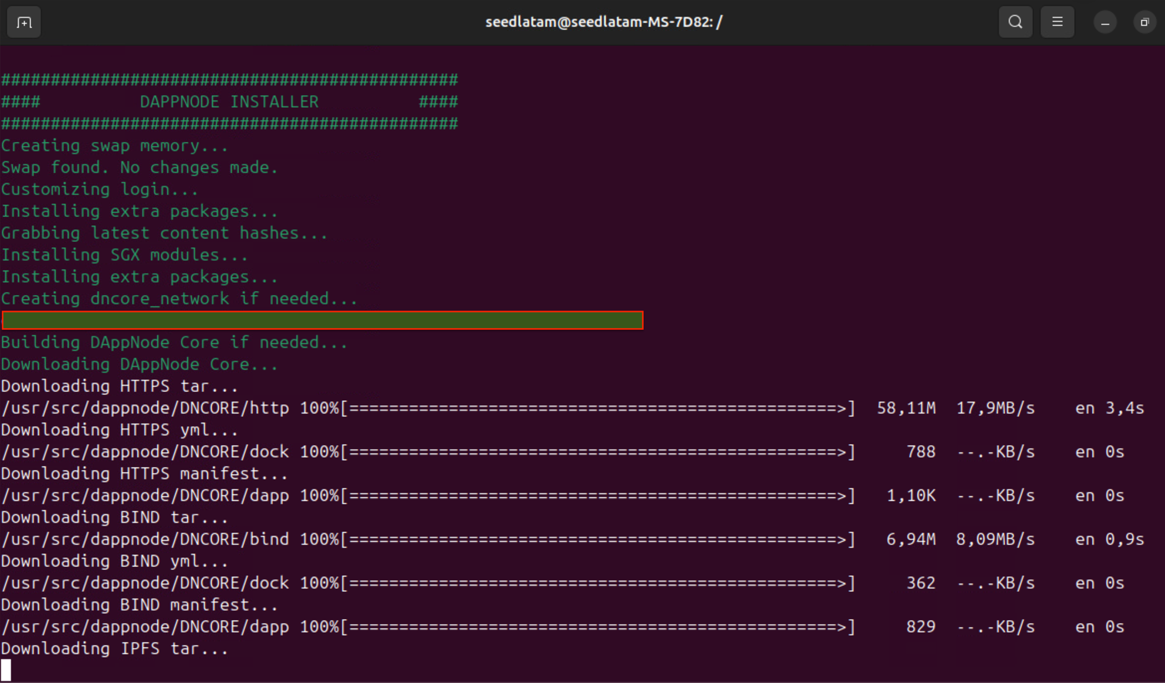 2. Luego de ello, puedes proceder a instalar Dappnode utilizando el siguiente comando en la misma terminal: