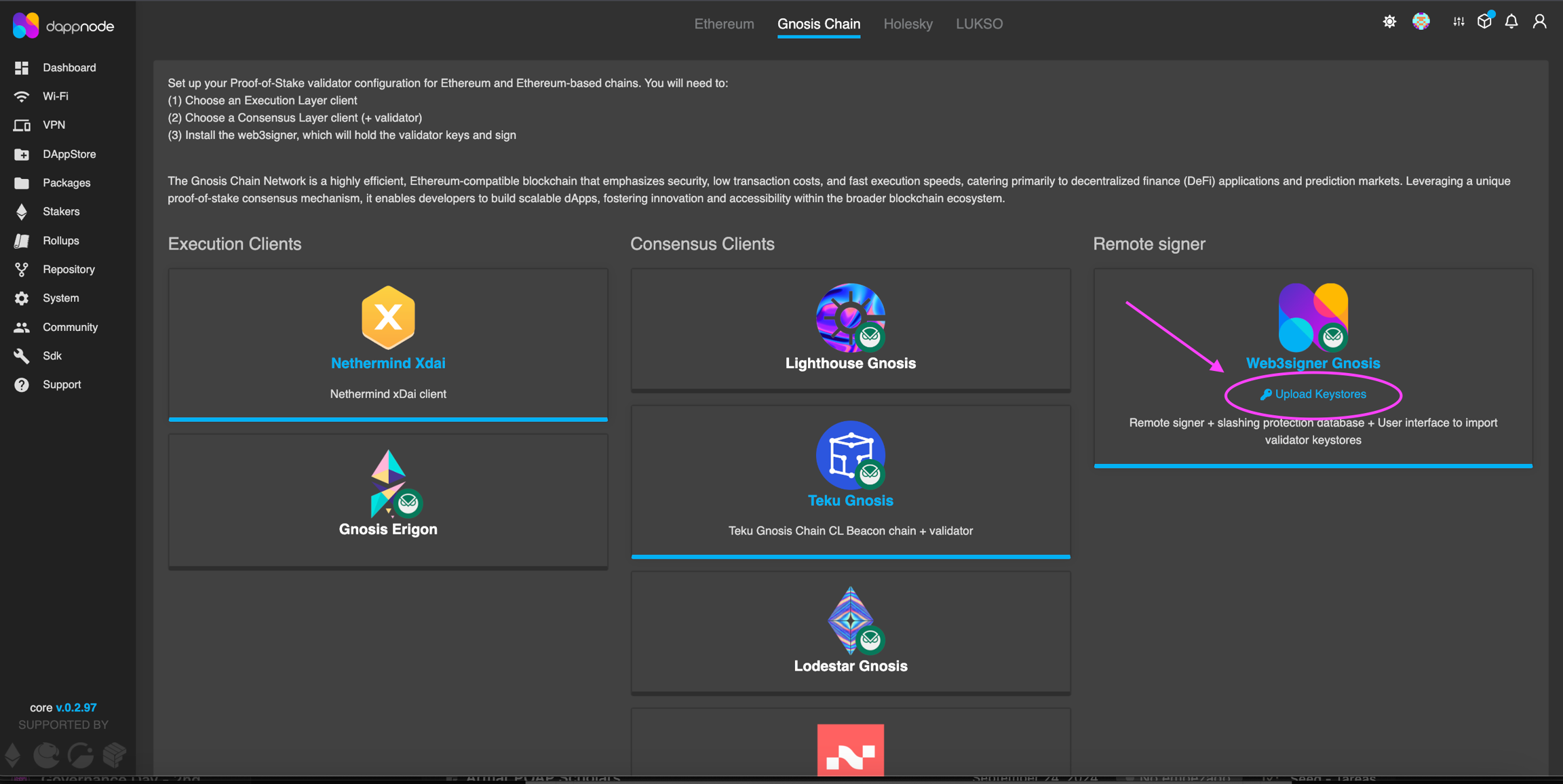 Y abrir Remote signer - Web3signer Gnosis - Upload Keystores