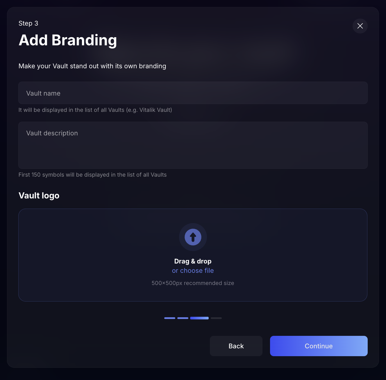 3. Step 3: Add Branding - vas a agregar un nombre, descripción y un logo a tu Vault para distinguirlo.