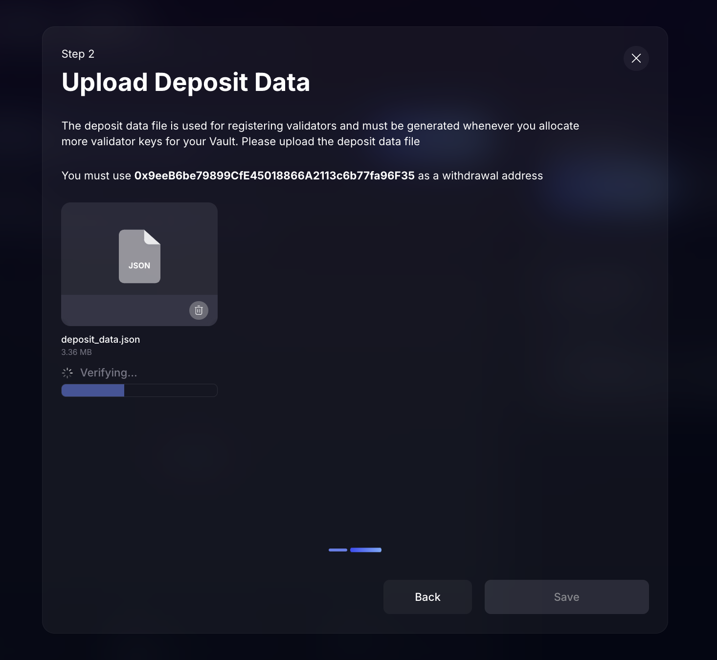 Step 2: A subir el archivo deposit_data.json y Guardamos