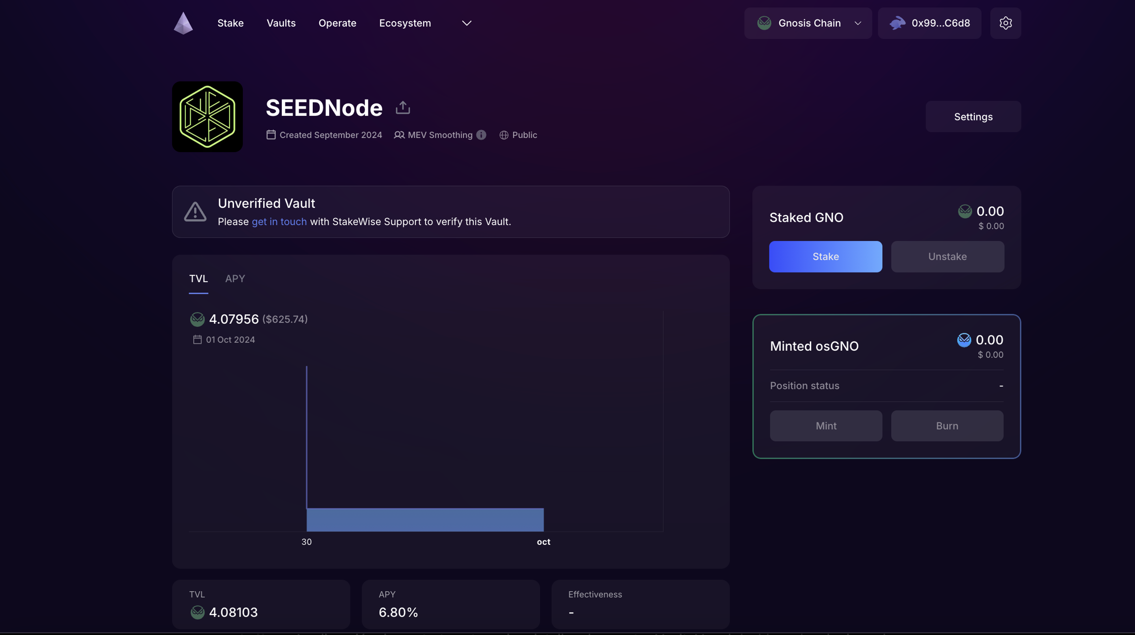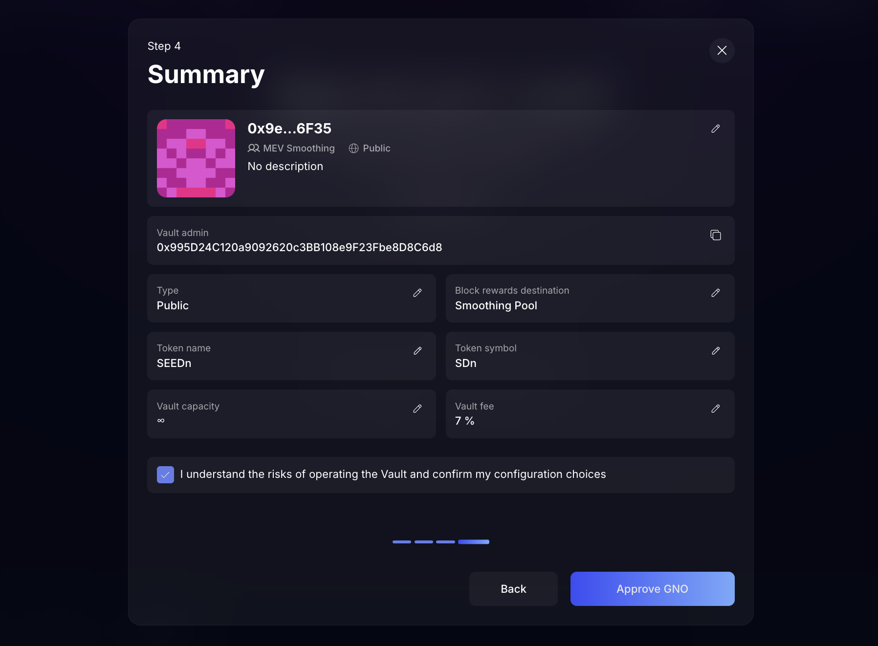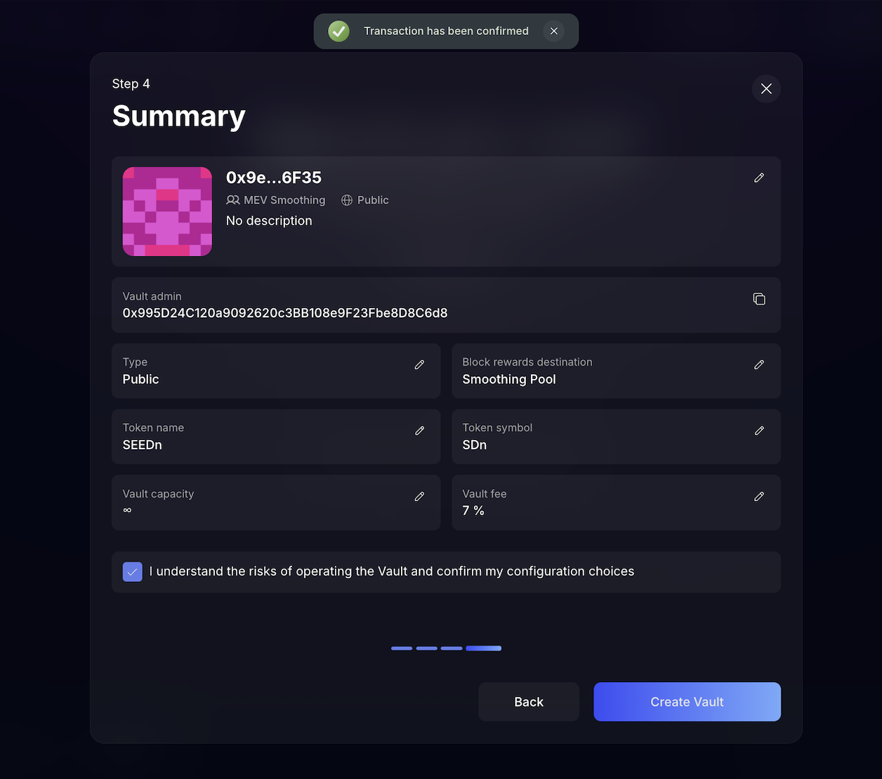 Para finalizar correctamente, ten en cuenta y contáctate mediante mail a info@stakewise.io o en su Discord https://discord.gg/stakewise para verificar el Vault.
