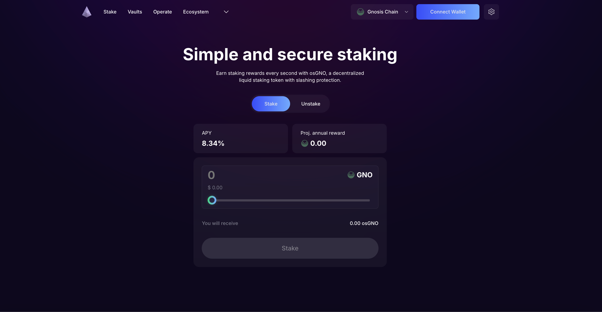 Además proporciona las herramientas y el software necesarios para que cualquier usuario con su propio hardware ( o algún servicio VPS ) pueda crear su propio pool de staking (llamado Vault) y obtener comisiones ejecutando validadores cuyo GNO fue depositado por otros usuarios.