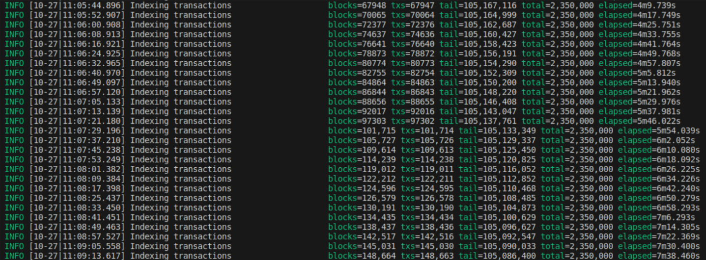 op-geth, ejecuta:Luego, deberías comenzar a ver la indexación de transacciones en tu terminal: