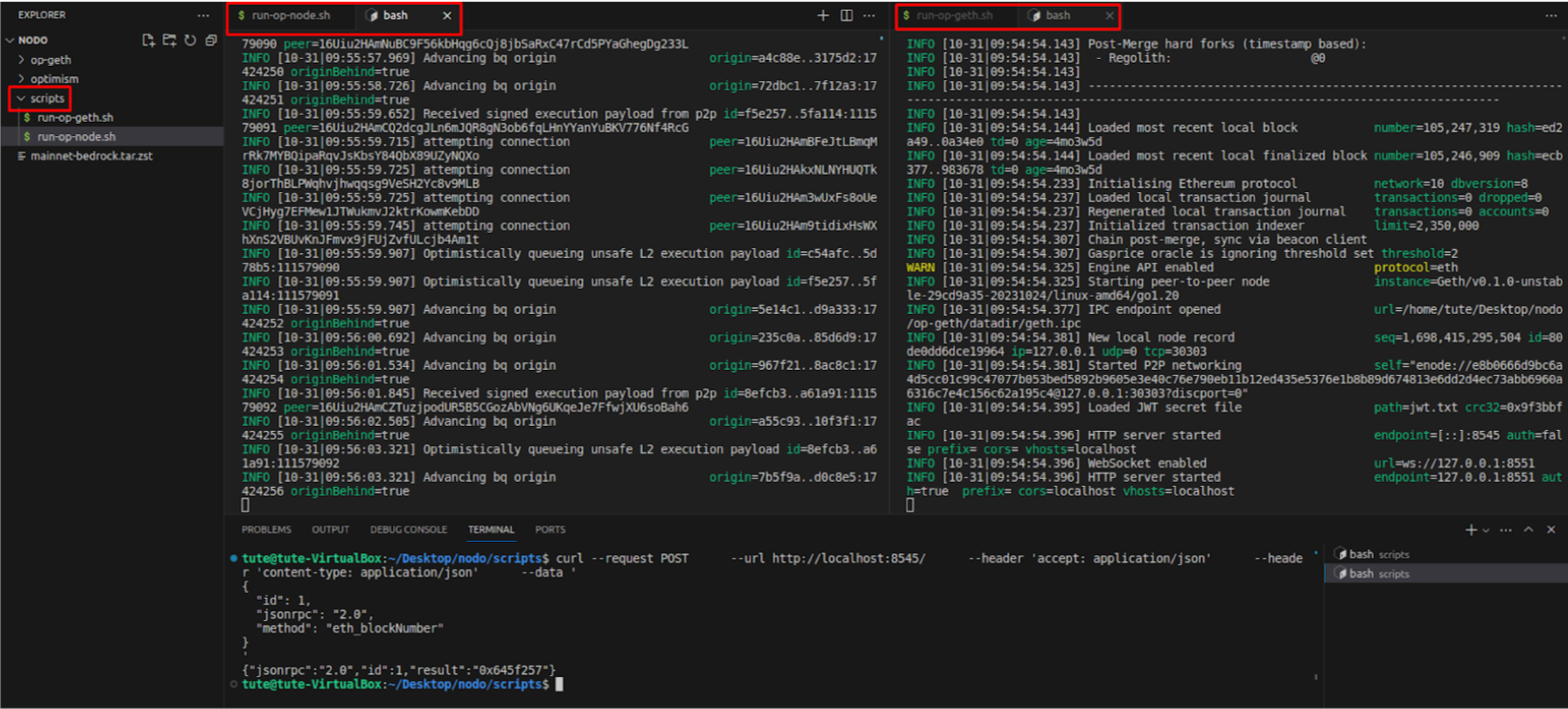 scripts, crea un nuevo archivo llamadotouch run-op-node.shRepite el proceso para hacerlo ejecutable con el siguiente comando: