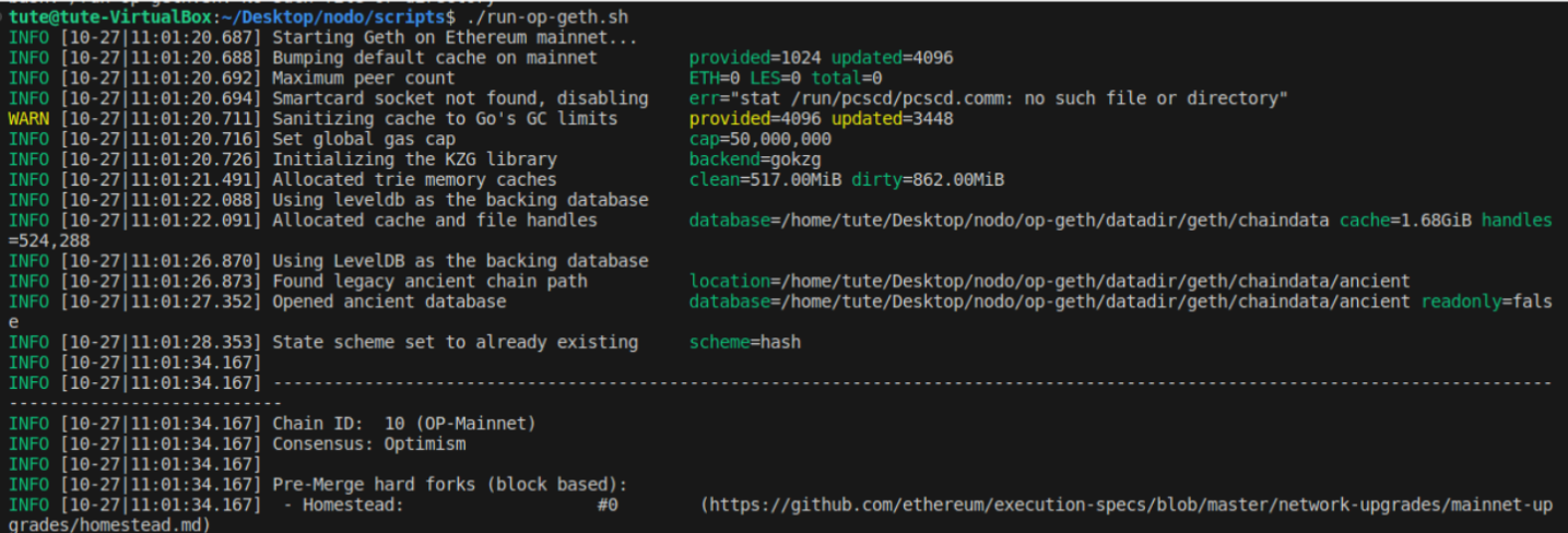 Y mensajes similares en la consola de op-geth: